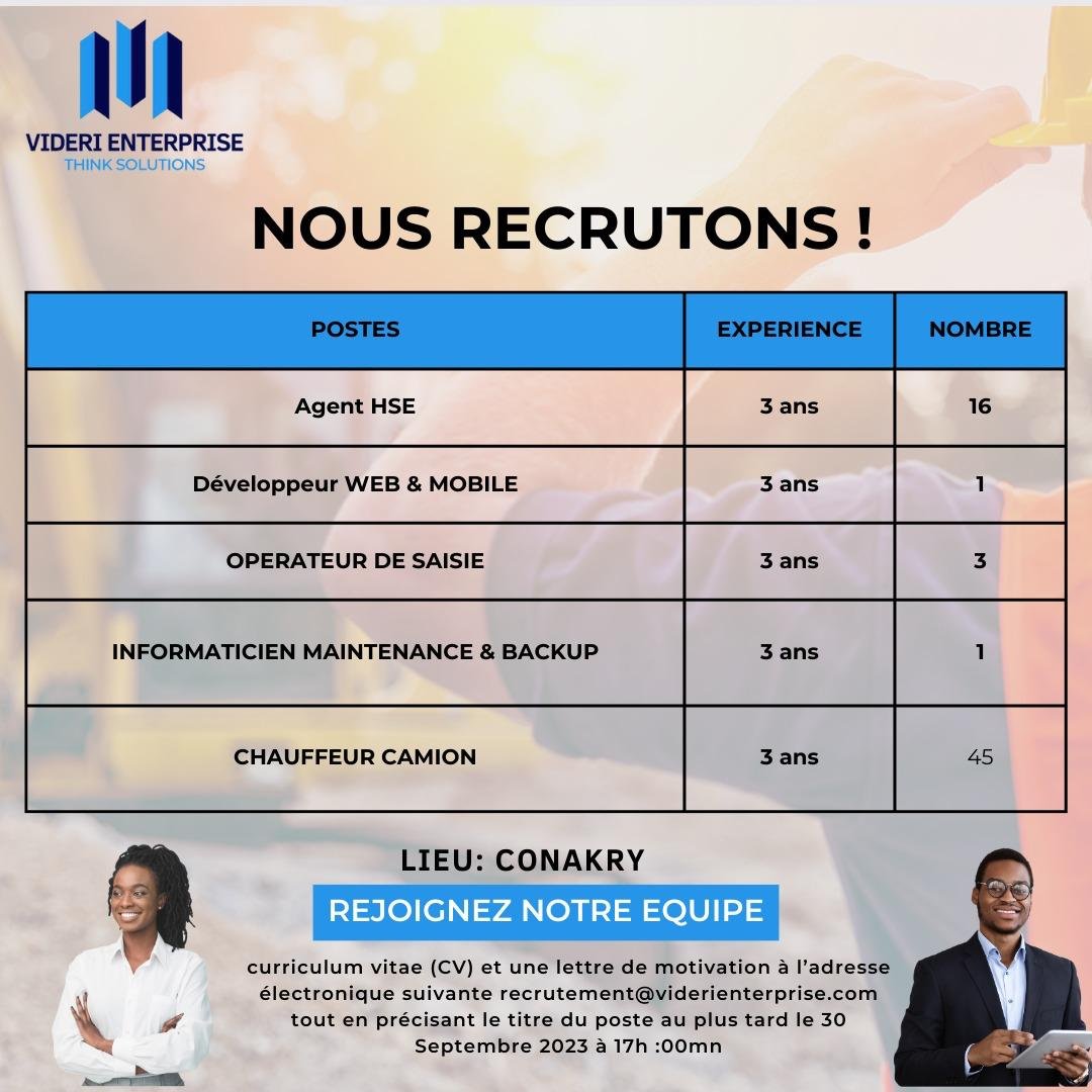 Envoyer le dossier de candidature composé d’une lettre de motivation et un curriculum vitae (CV) à la Direction des Ressources Humaines “recrutement@viderienterprise.com “